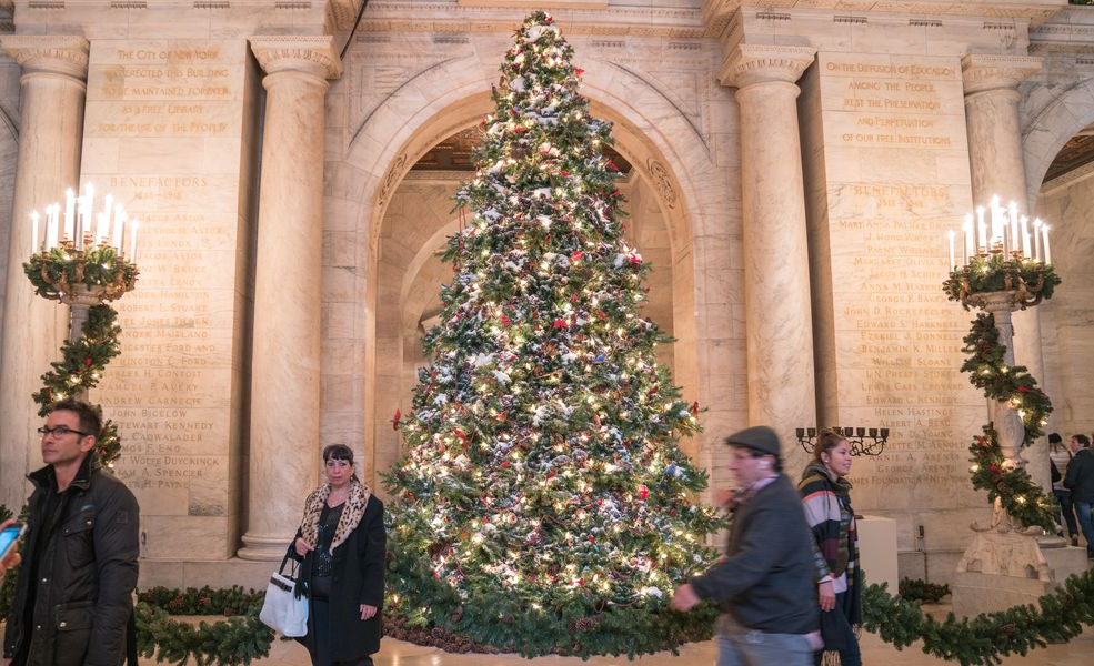 뉴욕은 한국처럼 사계절이고 각기 계절마다 즐길거리, 볼거리가 다채롭지만 크리스마스와 새해전야는 아이콘처럼 여겨져 와 뉴욕의 크리스마스를 꿈꾸는 분이 많으신 것 같아요. 사실 록커펠러 센터 말고 맨해튼 다른 곳에도 크리스마스 트리가 많은데요. 제가 개인적으로 좋아하는 다른 크리스마스 트리들로는 뉴욕 증권 거래소와 뉴욕 공립 도서관을 꼽을 수 있습니다. 뉴욕 증권거래소 트리는 록커펠러센터의 트리와 사이즈는 비슷한데 좀 더 가까이서 구경하실 수 있어요. 차이점은 전구로만 단장되는 록커펠러센터 트리와는 달리 실제로 다양한 장식이 트리에 달려있습니다. 다른 곳의 트리도 다양한 장식으로 치장되어 있죠.