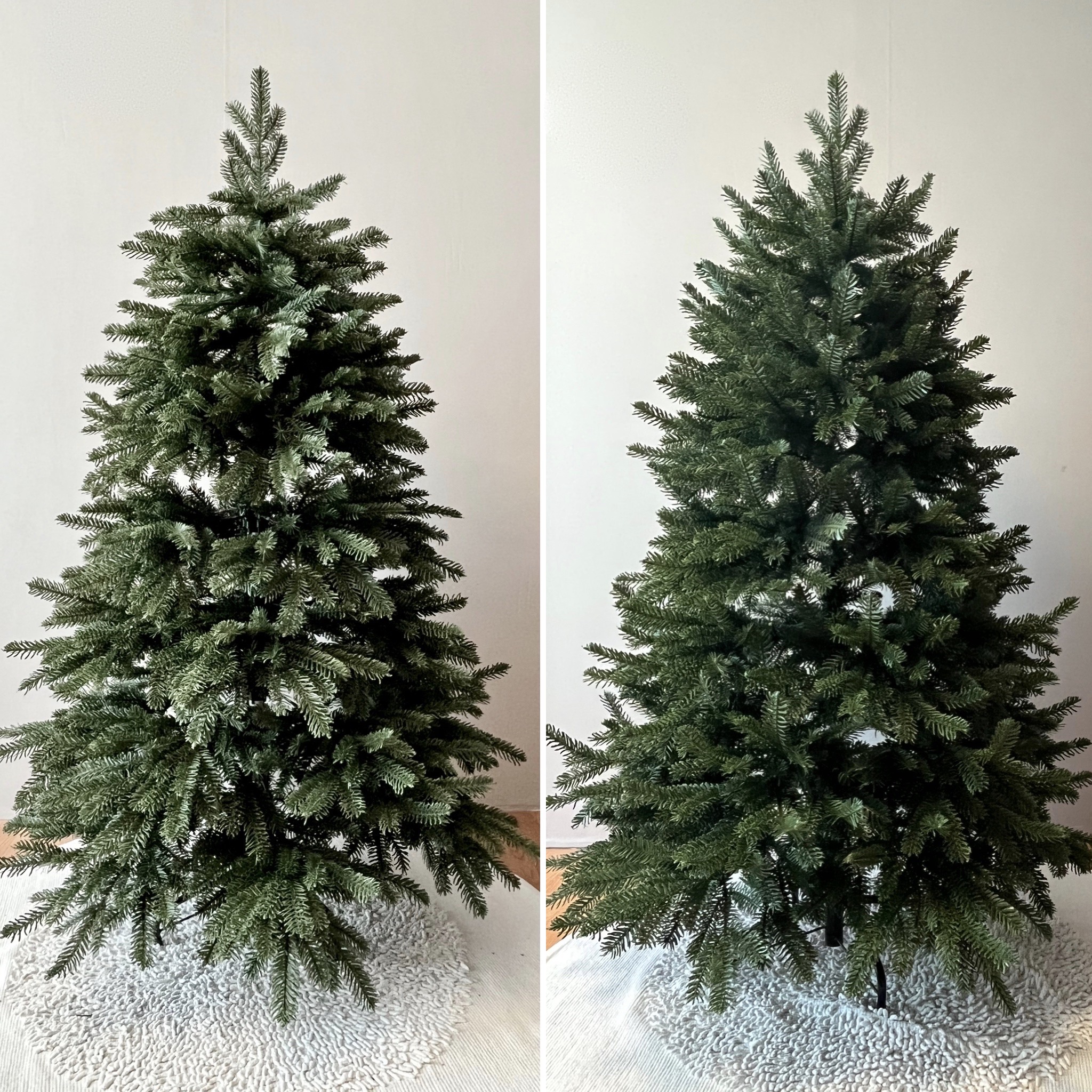 여기서 진짜 나무같은 퀄리티를 정의하는 데는 여러 가지의 관점이 있지만 공통적으로는 숱이 풍성한가 그리고 진짜 나무 같은 소재인가입니다. 가격이 올라갈수록 가짓수가 많아 꽉 찬 느낌이 들고 수세미 같은 느낌의 PVC가 아닌 실사 같은 PE의 비율이 정해집니다. 때문에 아무리 장식을 화려하게 해도 세련되고 고급 느낌이 나게 만드는 직접적인 요소는 크리스마스 트리 자체의 퀄리티라고 해도 과언이 아니에요. PE 100%의 크리스마스 트리는 따로 장식 없이 전구만 둘러놓아도 정말 예쁩니다!
