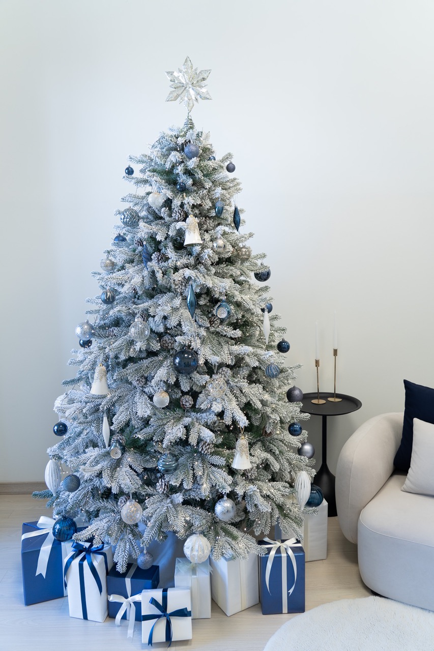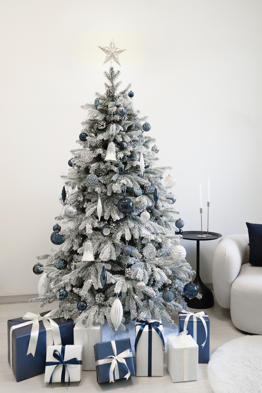 최근 인테리어가 미니멀한 게 대세라 시공할 때 화이트, 그레이 등등 톤다운된 컬러를 많이 쓰는데요. 그런 분위기에 딱 맞는 디자인을 찾으신다면 네이비, 틸 블루가 적절히 섞어 고귀한 느낌을 주면서도 깔끔한 고요한 밤, 실버 블루를 추천드립니다. 한눈에 반해버린 화이트 종은 개인적으로 제 최애 오너먼트입니다..!