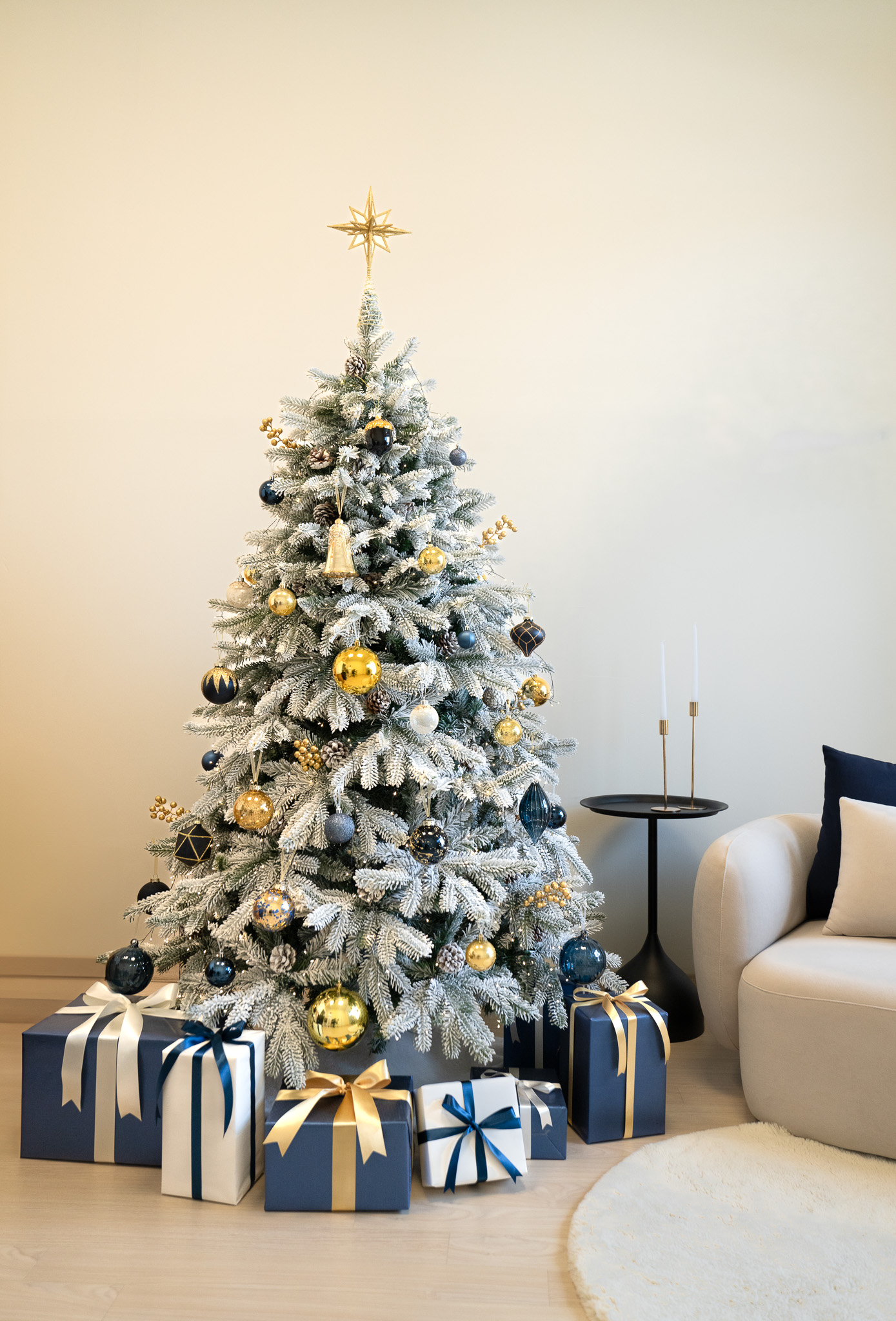 고요한 밤은 2가지 버전으로 골드블루, 실버블루 준비되었습니다. 고요하고 거룩한 밤 캐롤처럼 뉴욕트리엘프에서 선보이는 가장 고급스럽고 무게 있는 디자인이에요. 눈이 소복이 내린 스노우 트리는 이번 해 처음 선보이는 수종으로 굵은 잎이 겉으로 꽈~악 둘러진 퀄리티 높은 트리입니다. 중간에 솔방울도 들어가있어 미국에 계신 지인분이 보시더니 콜로라도주에 눈 소복히 내린 트리와 너무 똑같다고 하시더라고요.
